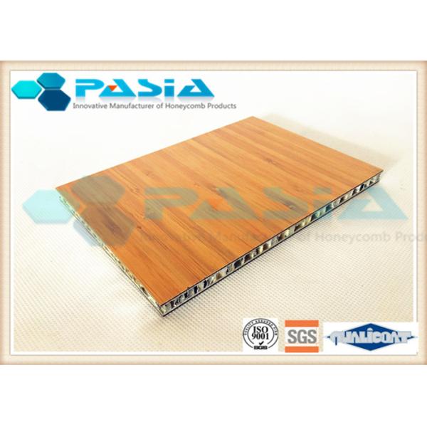 The Bamboo veneer aluminum honeycomb panel is a regular aluminum honeycomb panel bonded with a real bamboo veneer. For some special projects, the designers want to get a real bamboo quality appearance but the real bamboo material is very easy to be corroded or broken because of the sunshine exposure (eg. The panel used beside the windows). Therefore, the bamboo veneer aluminum honeycomb panel is produced by Pasia to meet the owner or designer who has the above mentioned requirement. The bamboo veneer bonded with the aluminum honeycomb panel is with a light weight and high strength. It cannot be easily damaged by outside shock because of the aluminum honeycomb backing can absorb most of the energy from outside so that the leftover for the bamboo veneer is very limited. This structure makes the bamboo veneer aluminum honeycomb panel a longer life time.