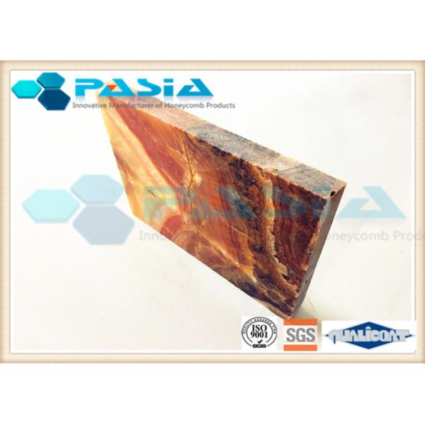 Cost Reduced UAE Onyx Veneer Aluminum Honeycomb Ceiling Panel for Luxurious Indoor Building Decoration is sandwiched aluminum honeycomb panel with a UAE Onyx stone veneer. As the UAE Onyx stone is very expensive, if using the solid stone panel to the ceiling, the price is very high and also it is very heavy and easy to brocken. However, after sandwiched with the aluminum honeycomb panel, the cost of the finished product can be reduced by about 1/2 or more. Meanwhile, the shortage of the solid stone panel has been also conquered.